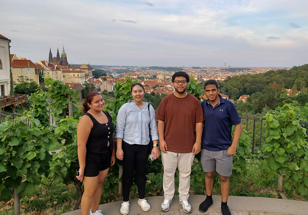 The students – Odivis Cepeda-Jimenez, computer science; Aaron Aragones, mathematics; Angie Ortega, biology pre-medical; and Jiwoo Choi, secondary education and mathematics – spent nine days in Prague, Czech Republic to attend the annual EuroPython conference, a premier international conference of its kind. The event brings together developers, data scientists, educators, researchers, and companies who use or contribute to Python, one of the most widely used programming languages in the world.